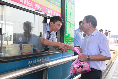26日上午,集團(tuán)領(lǐng)導(dǎo)首先來(lái)到在建的灣北二期項(xiàng)目TJ04標(biāo),現(xiàn)場(chǎng)查看了高架懸澆橋施工作業(yè),仔細(xì)詢問(wèn)項(xiàng)目部工程進(jìn)展情況和高溫天氣工人們的工作、生活情況。隨后與工人們一一握手,并將慰問(wèn)物品一一送到工人們手中,要求項(xiàng)目部在推進(jìn)項(xiàng)目進(jìn)度的同時(shí)抓好夏季高溫防暑降溫工作,嚴(yán)把施工安全關(guān)和工程質(zhì)量關(guān),確保工程安全有序推進(jìn)。隨后集團(tuán)領(lǐng)導(dǎo)一行前往申嘉湖高速浙滬北主線收費(fèi)站,為正在堅(jiān)守崗位的一線收費(fèi)員送上清涼降溫用品,感謝他們的辛勤付出。并現(xiàn)場(chǎng)觀摩了綠通車輛操作流程,仔細(xì)詢問(wèn)了站所日常管理營(yíng)運(yùn)情況。