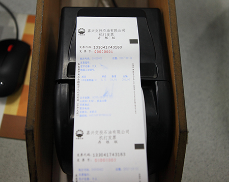 10月31日下午17時,嘉興交投石油有限公司所屬的嘉紹大橋服務(wù)區(qū)加油站發(fā)票打印機打出第一張“嘉興交投石油有限公司機打發(fā)票”,POS機刷卡成功,庫存成品油也自動跳轉(zhuǎn)計量,這標(biāo)志著加油站按實運作取得了圓滿成功。