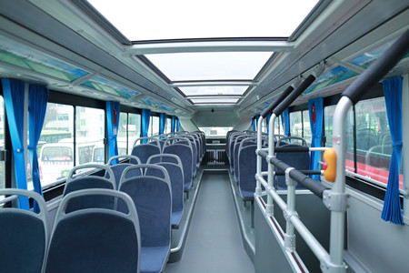 二是性能好。首先,該批雙層車采用德國進口變速箱和車橋,駕駛員行車操控性、駕駛舒適度更好。其次,車門上下客設計更貼心,前門為低地板一級踏步,方便老人、小孩上車,中門下客處安裝了無障礙導板,方便殘疾人士使用輪椅上下車。再次,車輪采用鋁合金輪圈,重量輕,質感好,提升了整車的美觀度。同時,車輛的安全配置更高,前門處安裝了易燃液體安檢儀,在常規公交車配備滅火器的基礎上,每輛雙層車還增配了四個液體滅火彈。另外,車輛電子路牌為中英文雙語顯示,同時配有雙語語音報站。