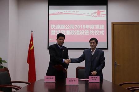 11月12日下午,集團公司董事長沈蘭冠來到快速路公司調研黨建工作,并簽訂黨建工作和黨風廉政責任書。快速路公司班子成員、各部門負責人參加會議。