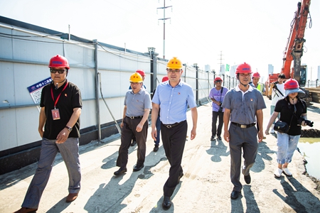 隨后,洪湖鵬一行仔細查看了工程現場建設情況,并認真聽取了市區(qū)快速路環(huán)線工程推進情況匯報。他強調,高溫天氣既要保證項目進度,同時要切實保障建設工人健康。他要求快速路公司要切實做好防暑降溫各項工作,加大攻堅克難力度,保進度、保質量、保安全、保文明,確保項目順利推進、按時完工。