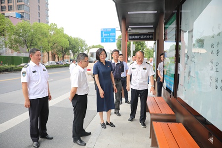 龔和艷一行首先來(lái)到城南路公交候車(chē)亭設(shè)施提升工程現(xiàn)場(chǎng),查看了公交站臺(tái)功能布局,并親自體驗(yàn)了公交站臺(tái)報(bào)刊閱讀等功能。在市區(qū)快速路環(huán)線工程土建02標(biāo)段,龔和艷一行詢(xún)問(wèn)了工程進(jìn)度和勞動(dòng)立功競(jìng)賽開(kāi)展情況,查看了鋼筋加工場(chǎng)施工情況。